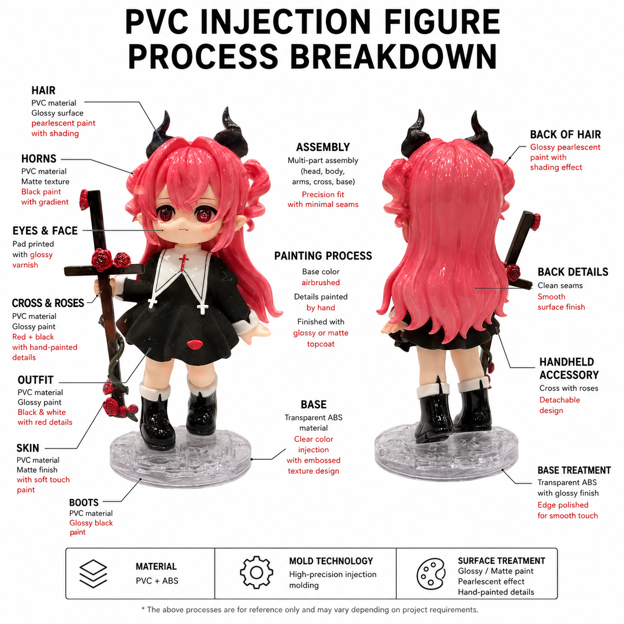 PVC is a widely used material for collectible figures and character toys that require precise detailing and stable production quality. It is commonly applied in action figures, blind box toys, anime collectibles, and display models.