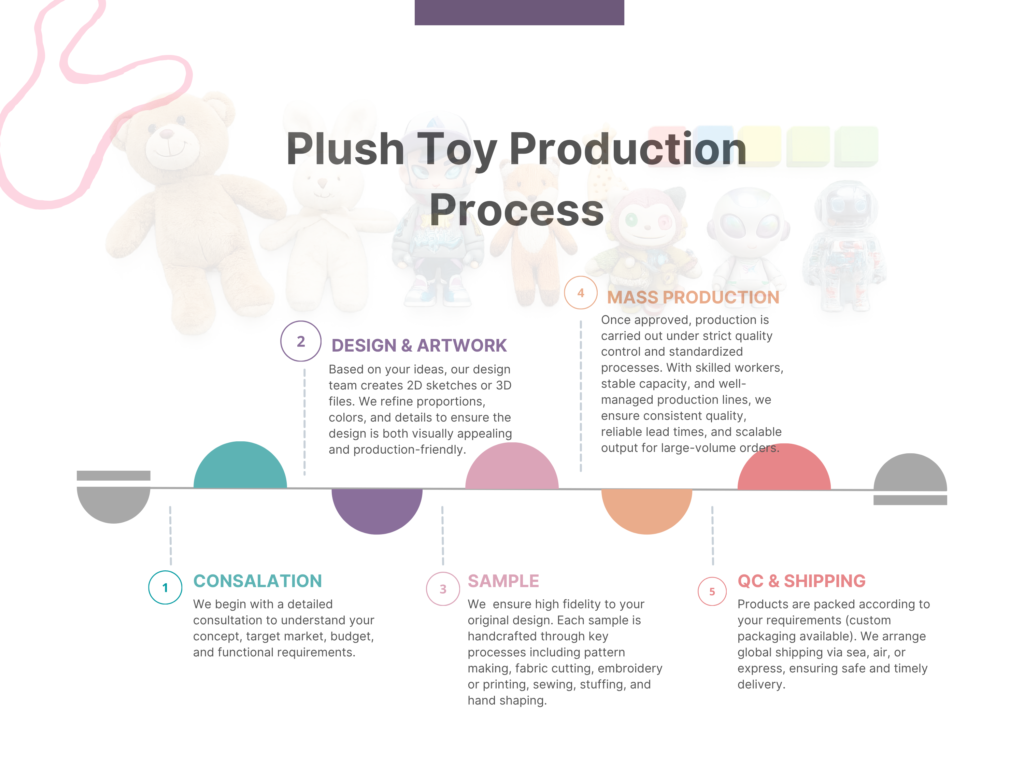 Custom Plush Toys for Brands & CreatorsFrom design to delivery, we provide end-to-end plush toy manufacturing with flexible MOQs and reliable quality.Up to 90% Design Fidelity
